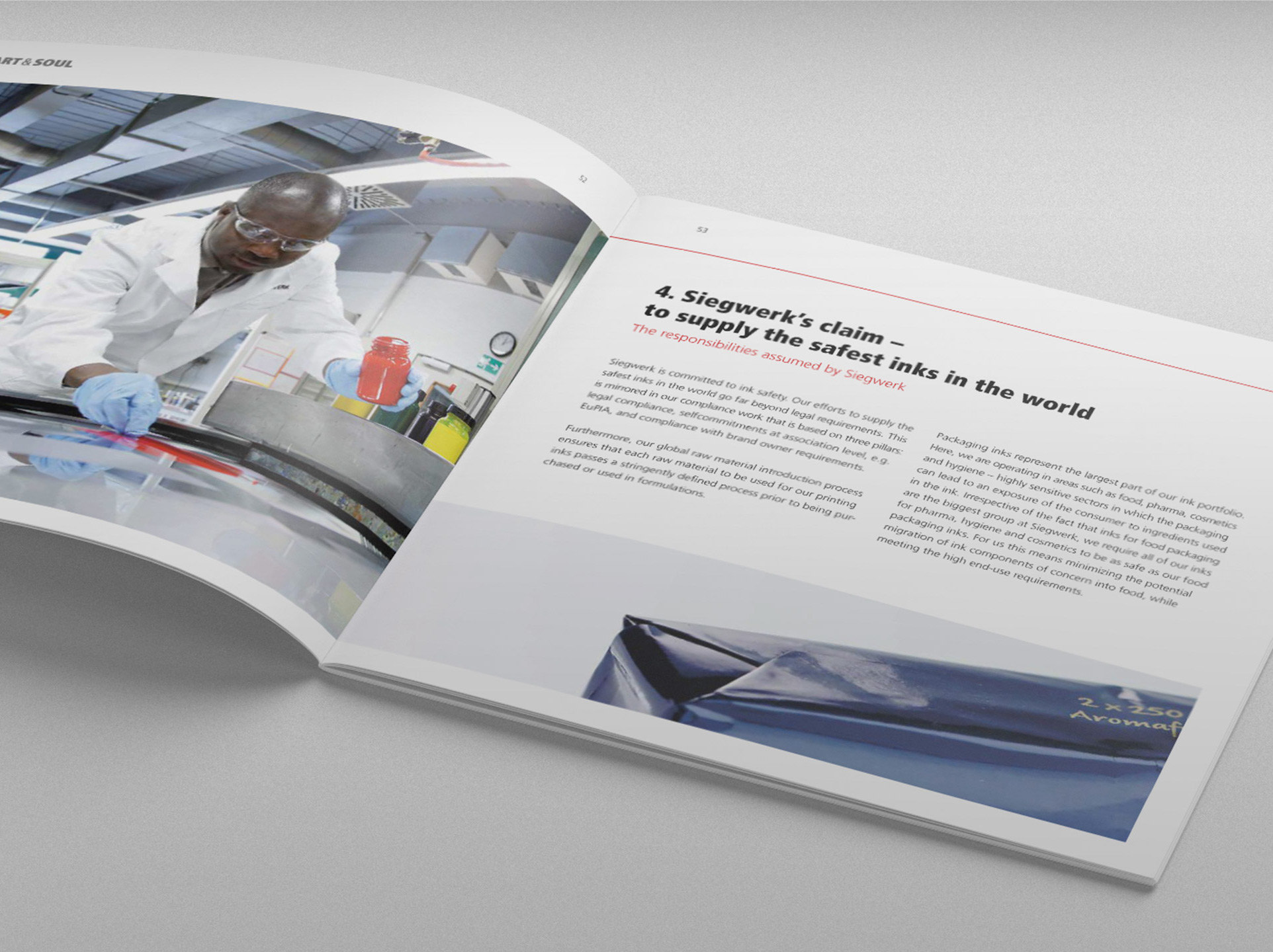 Additional scopes are the legal requirements and responsibilities in different countries and how Siegwerk claims to supply the safest inks in the world which meet far more than legal requirements.