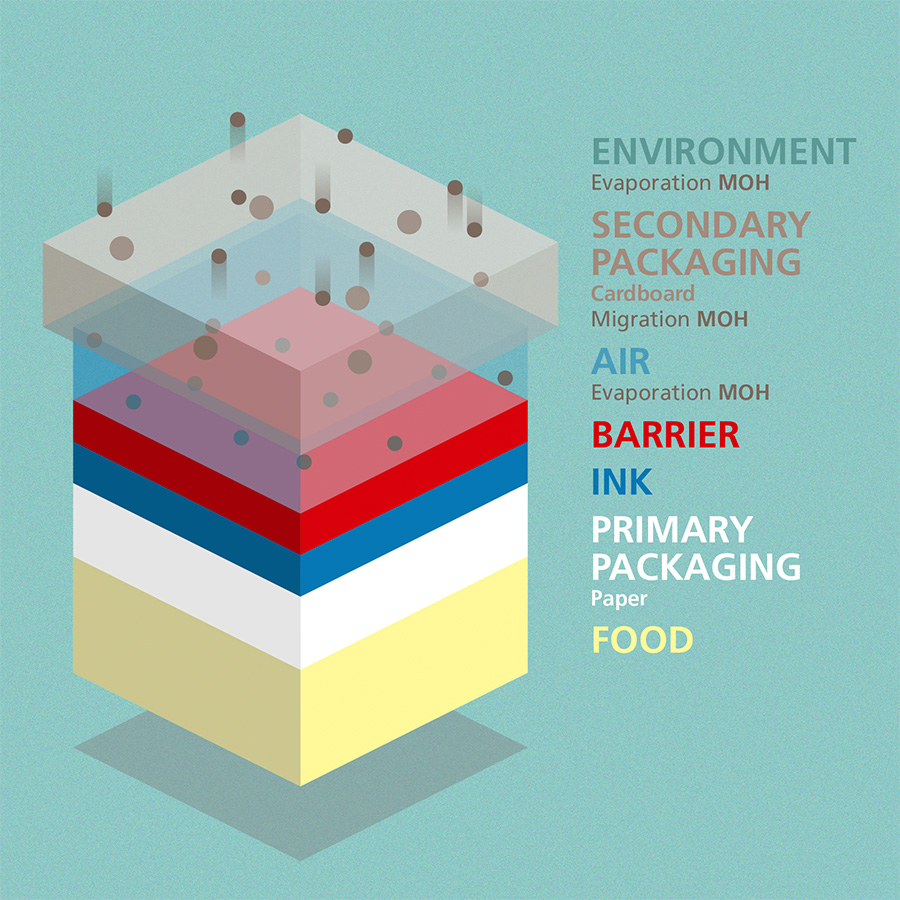 To prevent foodstuff from being contaminated with MOH’s by gas phase- and/or diffusion migration from the packaging it needs a safety strategy.
